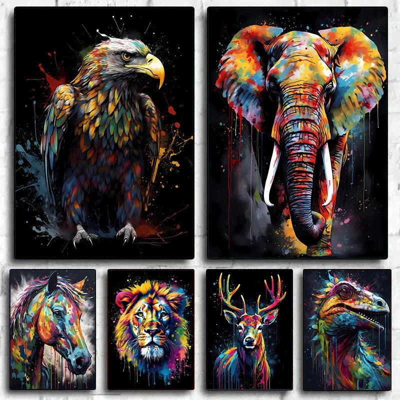 Meerkat Elephant Sea Otter Lion Colorful Animals With Drips Poster Canvas Painting Cute Animal Wall Art For Room Home Decor