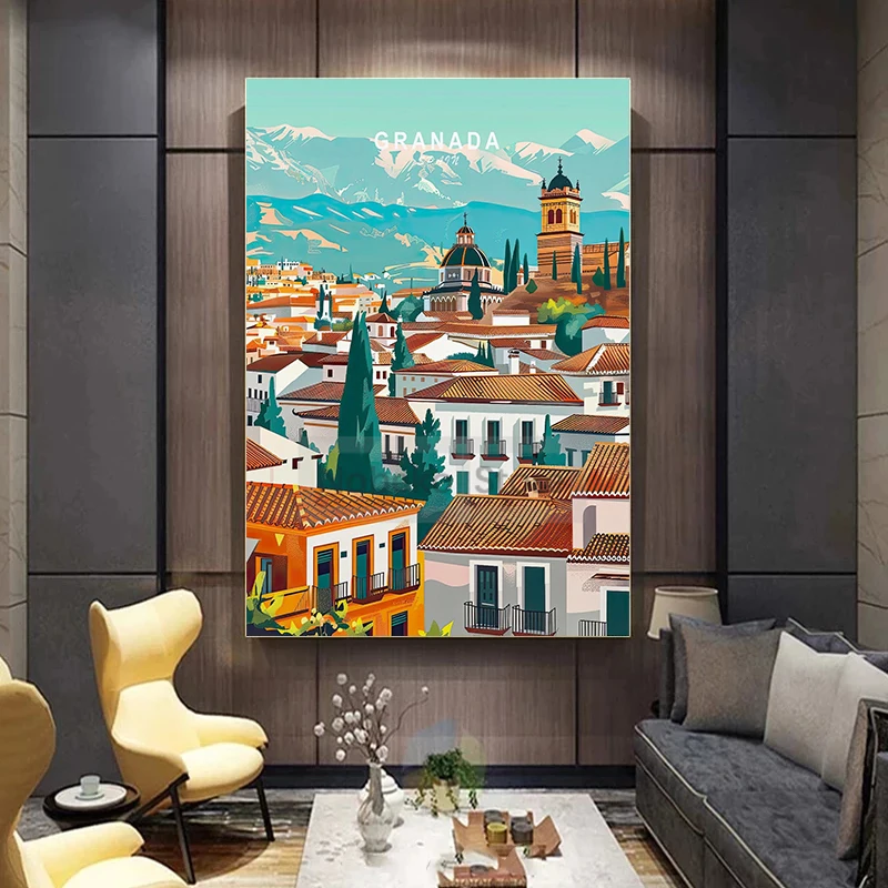 Painting Wall Art Pictures Home Living Room Modern Decoration European Spain Travel Poster Spain City Landscape Prints Canvas